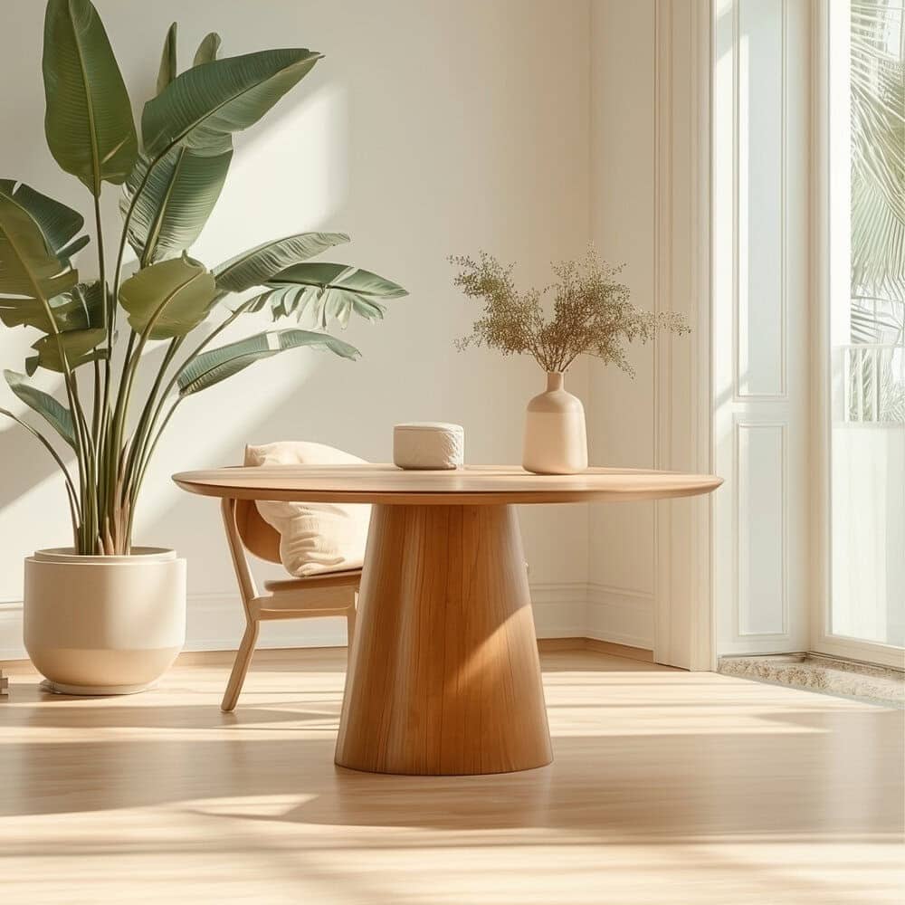 Mesa redonda em madeira com design e qualidade Artcasa para você renovar sua sala de jantar.